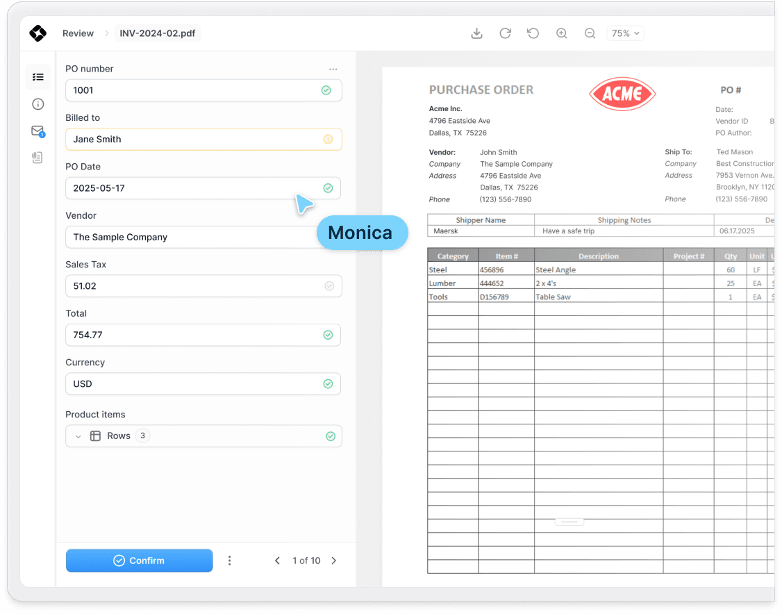 Send validated, structured data to your workflow in the format you need.