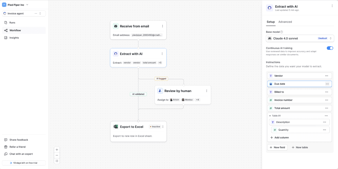 Set up an AI agent to extract, classify, and understand documents in minutes.