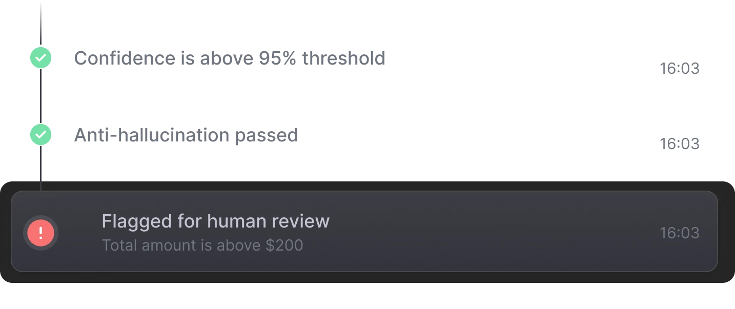 Automatically route uncertain cases to your team for fast review and approval in a dedicated interface.